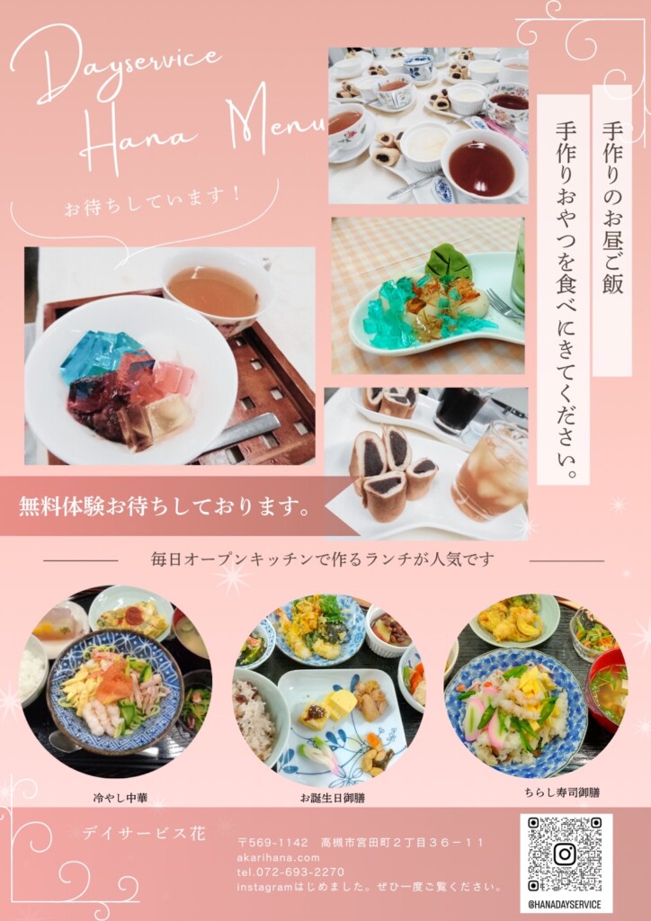 デイサービス花は地域密着型のデイサービスで、高槻市にお住まいの方が来られている定員18名の少し小さめのアットホームなデイサービスです。