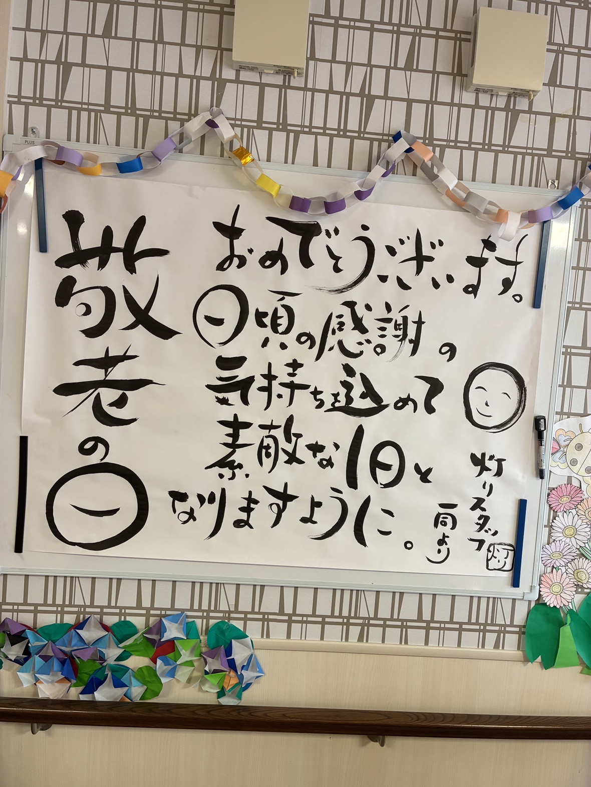 本日は、入居者の皆さまと共に「敬老の日」をお祝いしました。